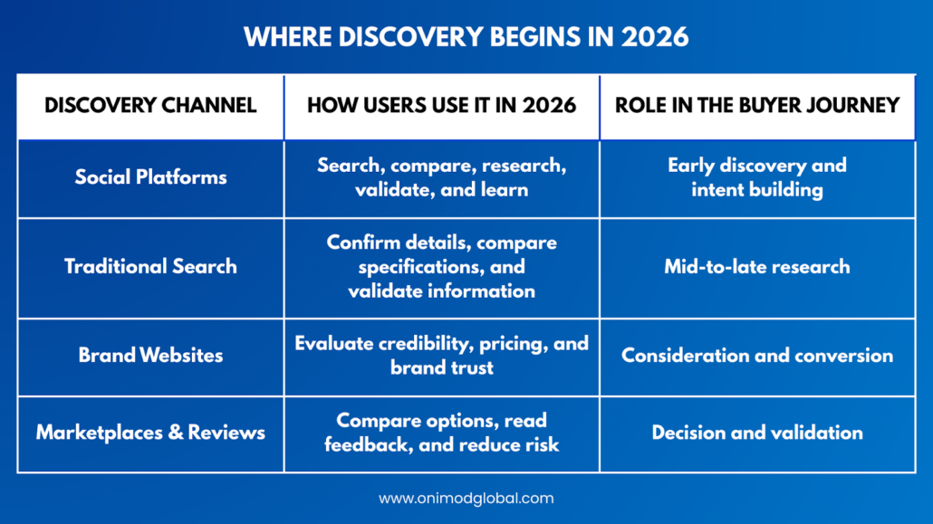 At Onimod Global, we approach social media as part of a broader discovery ecosystem.