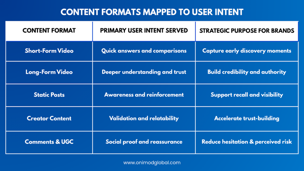 Each format plays a distinct role in the discovery journey. Successful brands design content ecosystems that support users at multiple stages rather than relying on one-off posts.