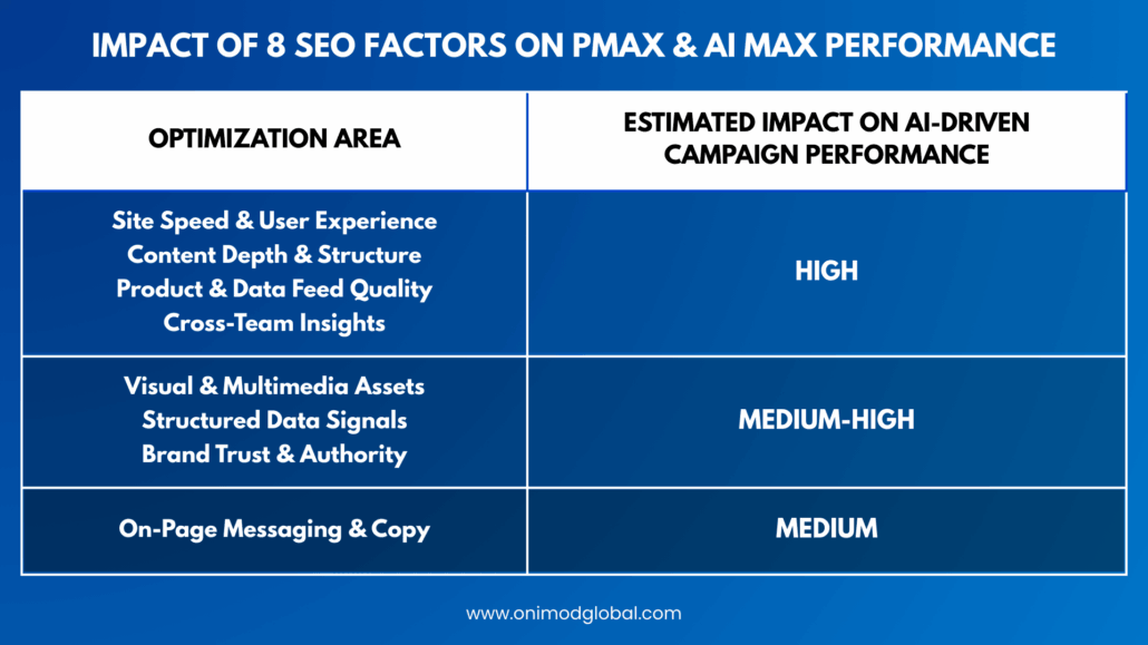 If you want expert guidance on optimizing your SEO for PMax and AI Max, visit onimodglobal.com to connect with our team.